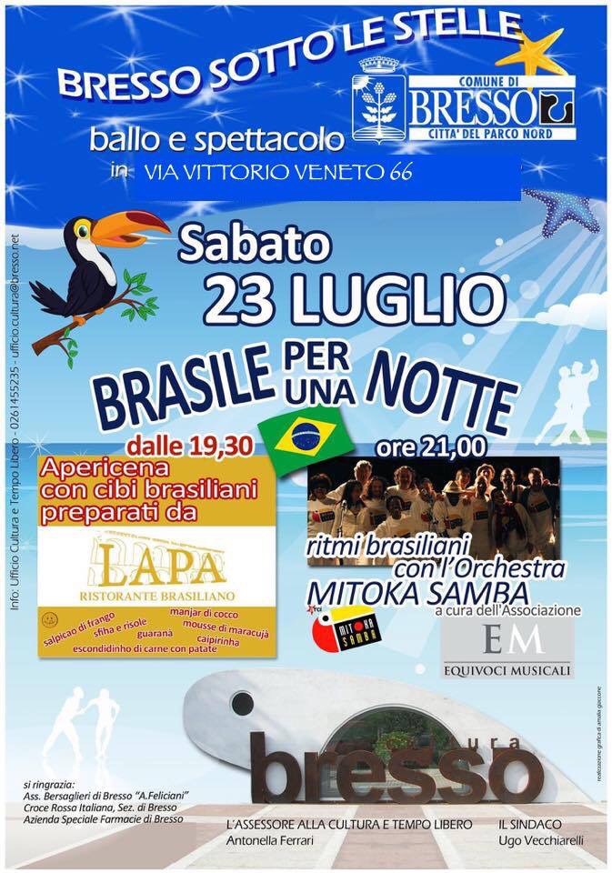 Mitoka Samba suona alle 21.00 Sabato 23 Luglio a “Bresso sotto le stelle” Via Vittorio Veneto 66,BRESSO